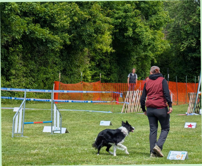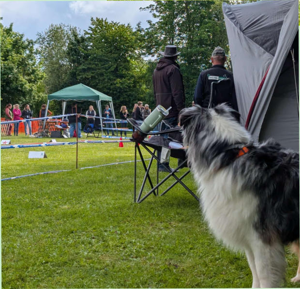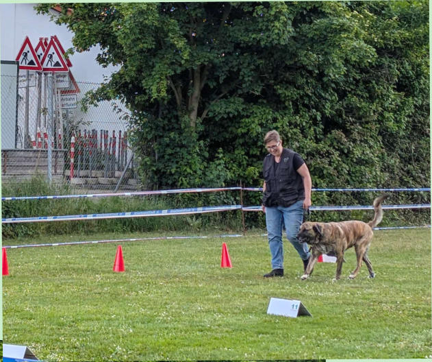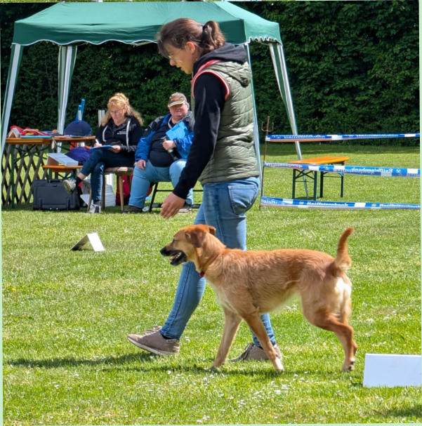 sonnigem Wetter, ihr erstes Rally Obedience Turnier aus.
